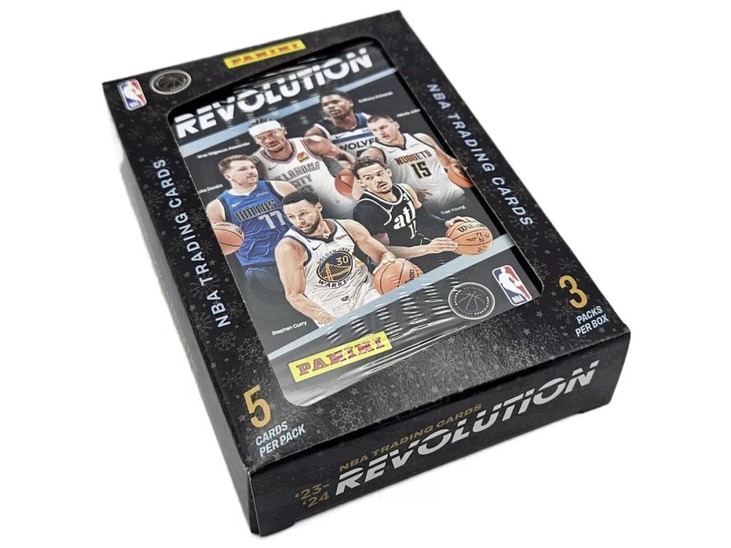 Get ready for a true collector's experience with Panini's latest, limited edition 2023-24 Revolution Holiday Tin basketball card box! This special, festive metal tin is captivating not only for its unique packaging but also for the exclusive cards it holds, which are must-have items for every serious NBA card collector and fan.