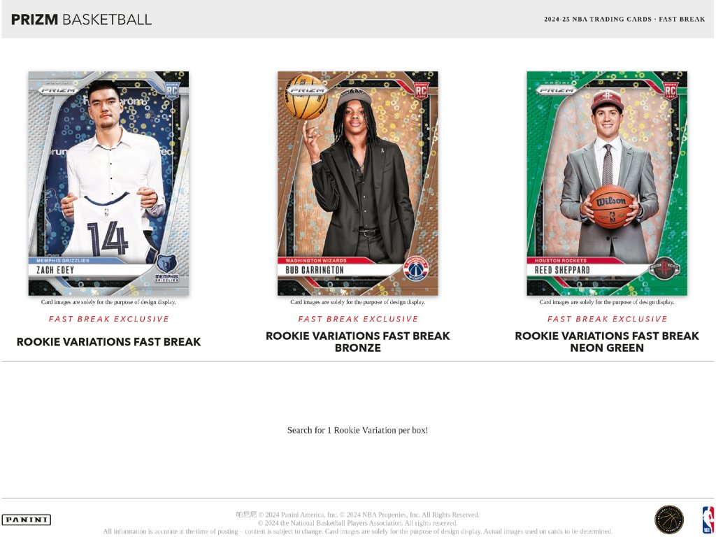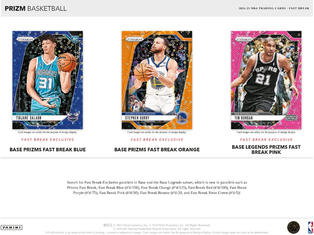 - 12 Prizm Parallel Cards: These stunning, shimmering cards are the heart and soul of collecting. Look for the "Fast Break" exclusive, numbered parallels like Blue, Red, Purple, Pink, Bronze, and the extremely rare Neon Green!